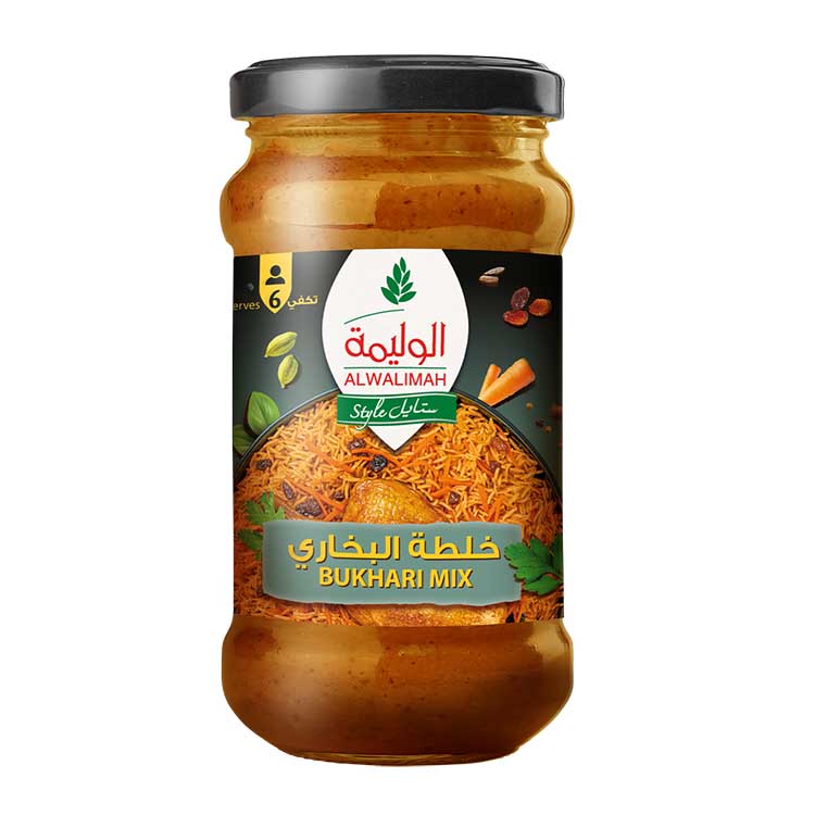 صلصة الوليمة البخاري بوزن 300 جرام هي خلطة توابل غنية ومكونات طبيعية مصممة لإضفاء نكهة بخارية أصيلة على الأطباق، مثالية مع الأرز كالكبسة والبرياني، أو لتتبيل اللحوم والدواجن، وتتميز بطعم قوي وغني يضيف نكهة مميزة للطعام.