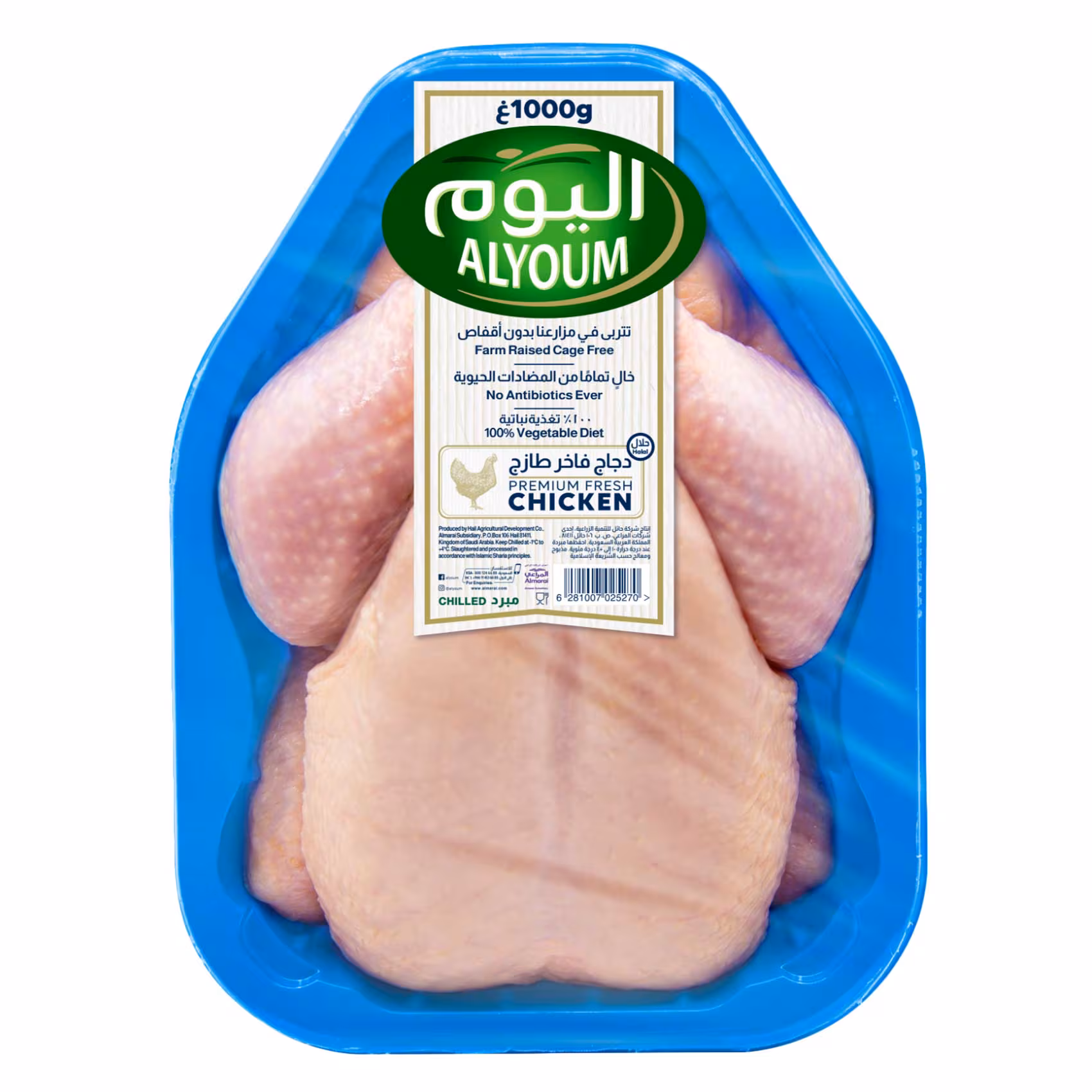 دجاج طازج كامل بوزن كيلو واحد، مثالي للشوي أو السلق