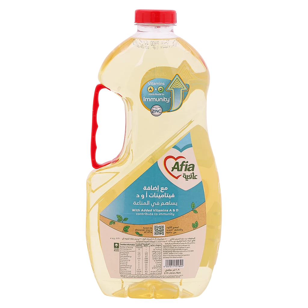 زيت دوار الشمس بدرجة دخان مناسبة، يصلح للقلي والطبخ ويمنح طعماً خفيفاً. الحجم/العبوة: 2.9 لتر.